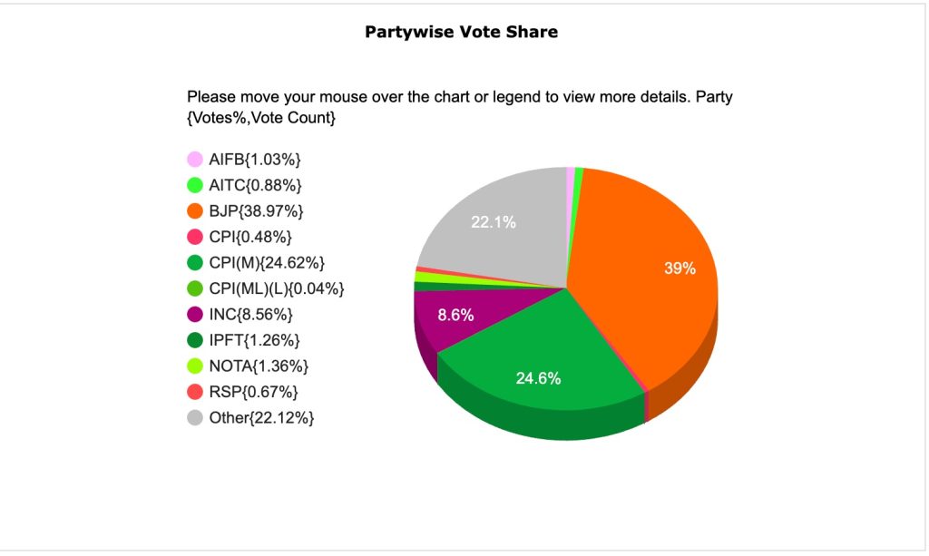 बीजेपी का वोट शेयर 39%, CPI-(M) का 24% से अधिक