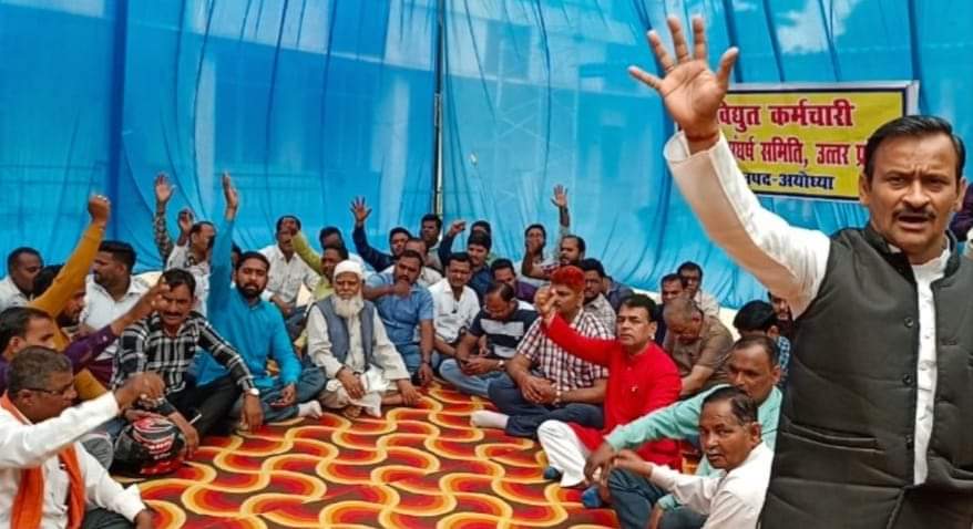 अयोध्या : विद्युत कर्मियों का धरना अनवरत जारी, न सरकार का डर और न न्यायालय की अवमानना का भय